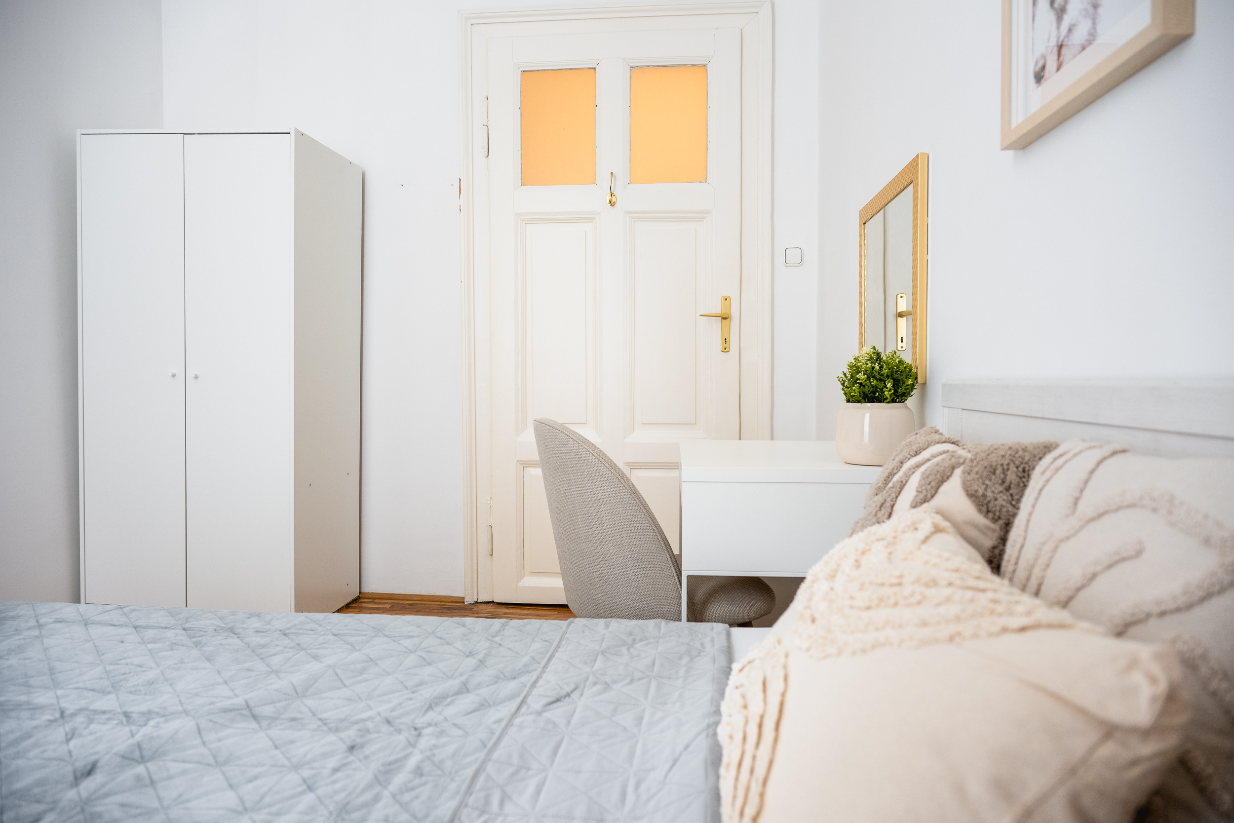 windowsepareted accessdouble bedbedside tabledesk