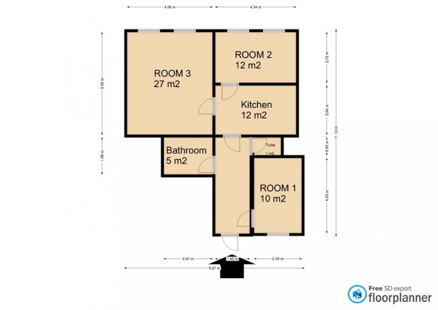 DESCRIPTION: FLATSIZE: 75 m2 (3 bedrooms, kitchen/dining room; 1 bathroom, 1 toilet)