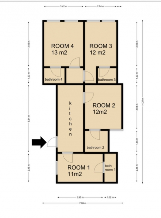 DESCRIPTION: FLATSIZE: 80 m2 (4 bedrooms ALL WITH A PRIVATE BATROM, kitchen, dining room)