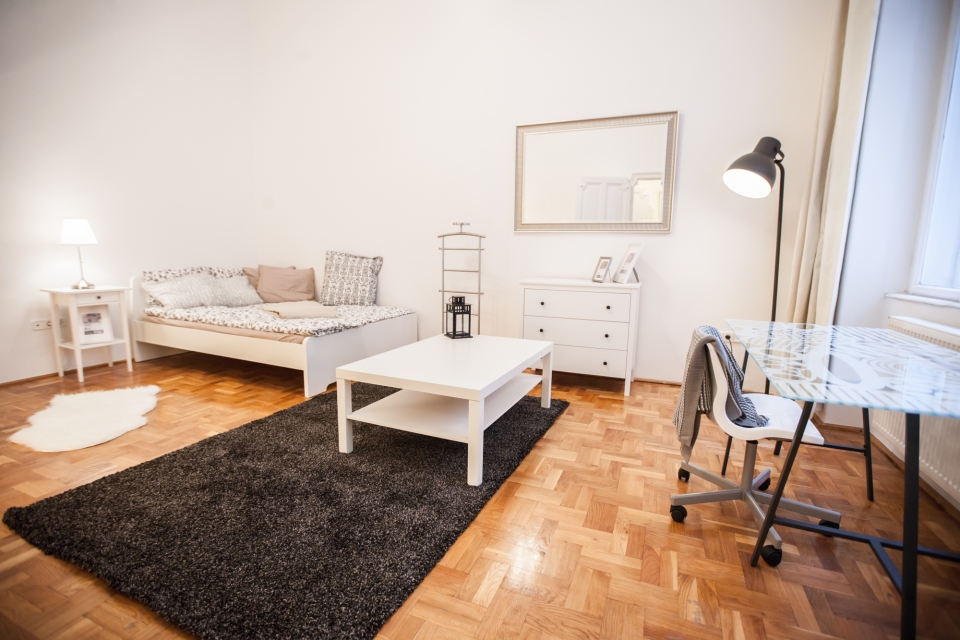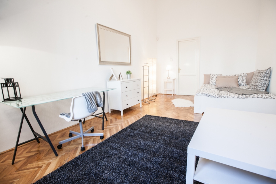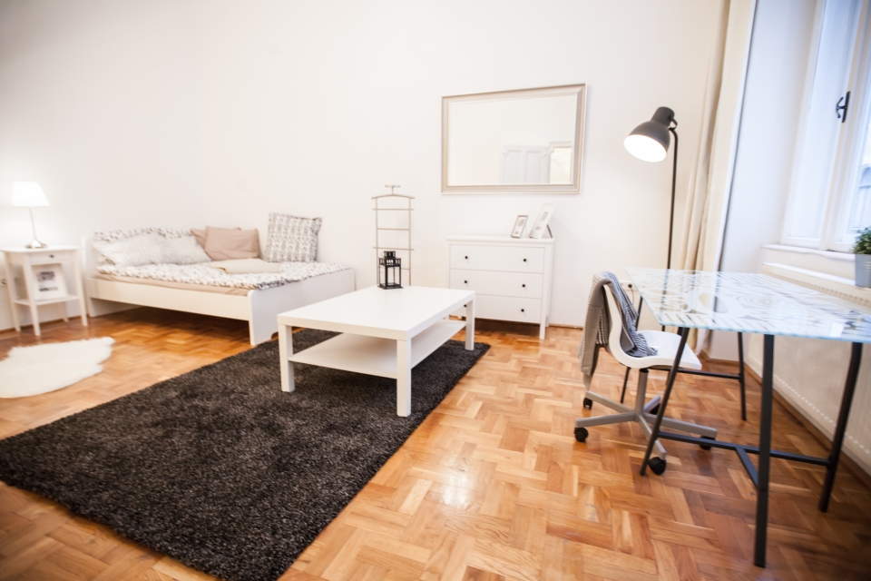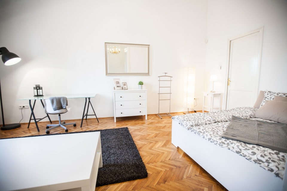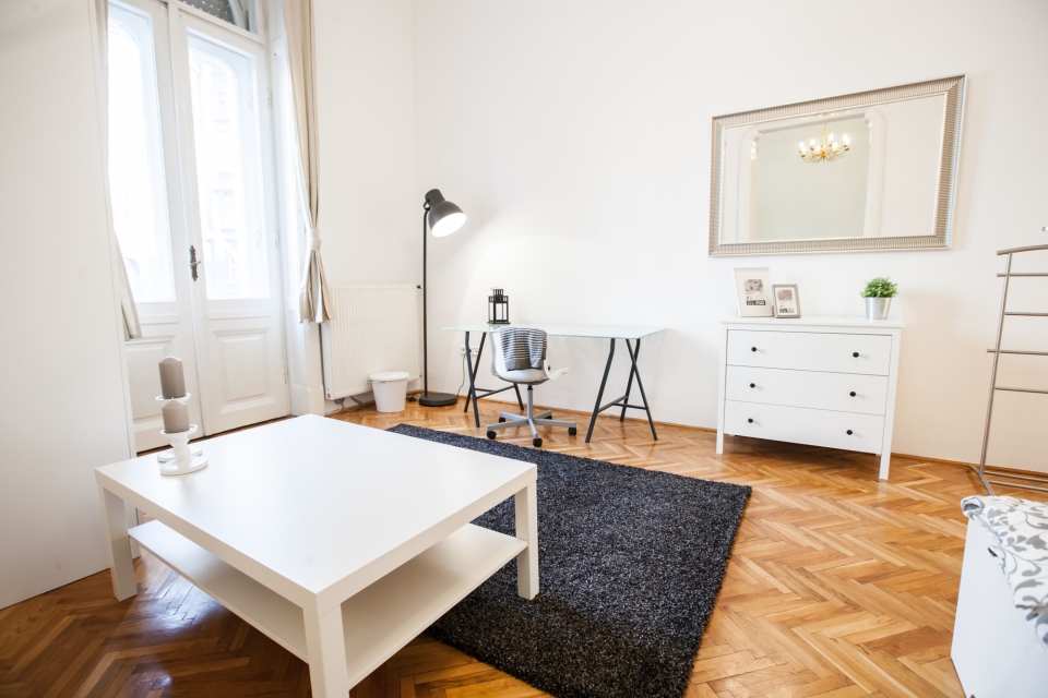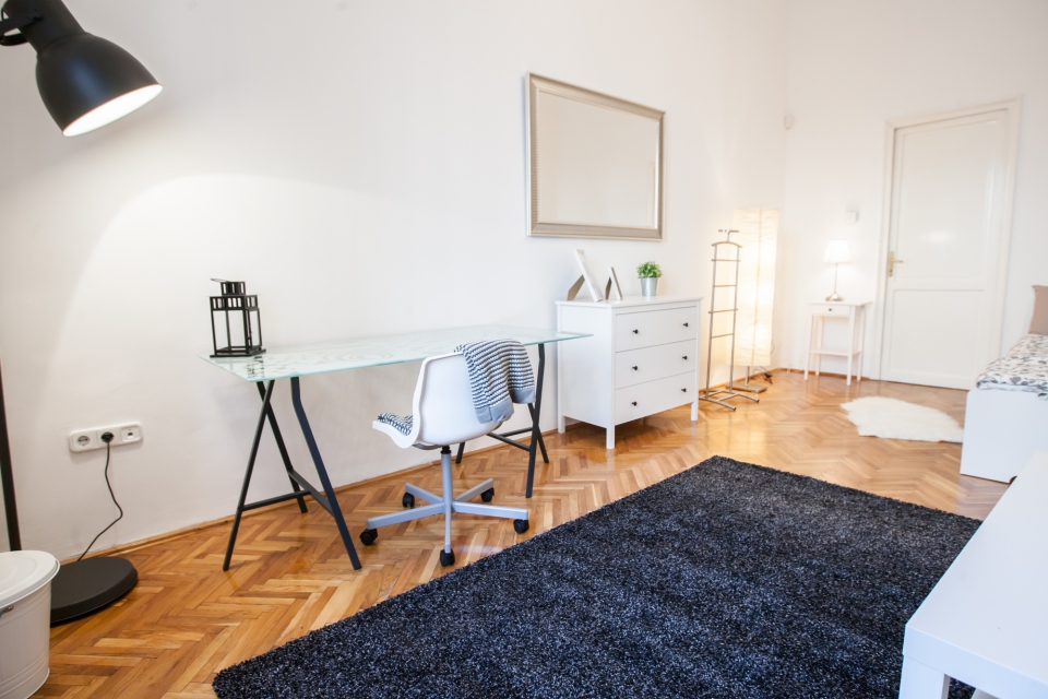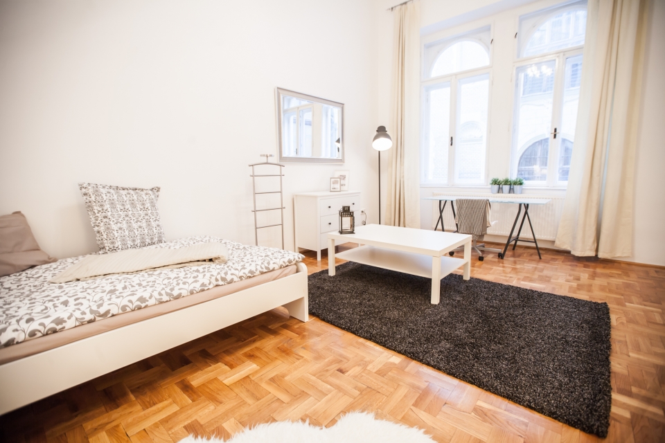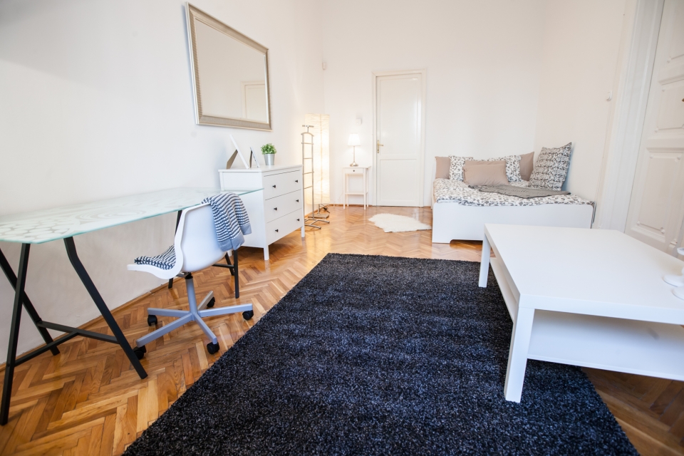 windowsepareted accessdouble bedcupboardcoffe tabledesk